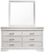 Experience the perfect blend of storage and sophistication with this 6-drawer dresser featuring a matching mirror. Constructed from high-quality manufactured wood, this dresser provides ample space for your clothing and essentials while adding elegance to your bedroom.. Abundant storage: Six spacious drawers offer room for your wardrobe. Mirror included: A coordinating mirror enhances functionality and style. Durability assured: Manufactured wood construction ensures lasting quality. Effortless maintenance: Wipe clean with a damp cloth for easy upkeep.