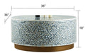 Elevate your home's aesthetic with our stunning coffee table. Its circular silhouette boasts an exquisite top available in elegant ivory, versatile gray, and bold navy options, adorned with captivating floral patterns crafted from Capiz shells. The eye-catching gold base adds opulence to your living space and invites warm, engaging conversations with its round shape. Customize the table with your favorite decor pieces, vibrant flower arrangements, or stylish placemats for cozy evenings or game-day gatherings.