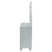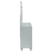 Transform your bedroom with the transitional elegance of our six-drawer dresser and its accompanying mirror. The dresser's vibrant silver metallic finish and fret work detail on the front panels exude modern glam, while the crystal-like pulls and black felt-lined top drawers add a touch of luxury. Delicate bun feet complete this exquisite dresser, making it a stunning showpiece. The rectangular mirror, with its decorative fret work frame and beveled edges, enhances the glamor and radiates sophistication, perfect as a standalone piece or paired with the dresser. Key Features: • Six-drawer dresser with elegant fretwork and decorative mirrored framing • Silver metallic finish highlights the dimensional front panels and bun feet • Crystal-like drawer pulls add sparkle, with felt-lined top drawers for valuables • Rectangular blue LED mirror includes matching fretwork and beveled mirrored edge • Mirror is designed to mount on dresser, completing the glam presentation • Built from engineered wood and polyresin with luxe trim and crystal hardware