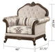 Transform your living space into a realm of opulence with this breathtaking living room set. Designed to emanate a royal traditional look, it is the epitome of elegance, making it a perfect choice for those who yearn for a classic aesthetic. Every detail has been carefully crafted to create a truly majestic ambiance. The living room set exudes a royal traditional look, perfect for those seeking a classic aesthetic that is upholstered with intricate floral patterns, it adds a touch of elegance and charm to any space. The great button tufted back cushion offers both comfort and a luxurious appearance and a similar button tufting can be found on the bottom of the frame as well.
