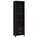 Overhaul your living space with this cappuccino entertainment wall. This wall is constructed with four pieces, including one TV console, two media towers and one bridge. A total of 16 shelving units are available to store your media and decor. Meanwhile, five concealed drawers enhance the organization of your living space. This transitional entertainment wall is suitable for all styles of living spaces with its clean and modern design.
