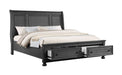 This bedroom furniture piece is designed with both style and practicality in mind. Available in queen and king sizes, it offers two-drawer footboard storage for your convenience. Crafted from a combination of solid and manufactured wood, it features a rustic wire brush gray finish that adds charm to your space.. Available in queen and king sizes. Features 2-drawer footboard storage. Crafted from solid and manufactured wood. Rustic wire brush gray finish for added character.