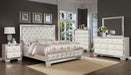 Taking its cues from Hollywood Regency interiors, this white Chest is puttin' on the ritz in a big way. The Beige chests's ultra-clean profile is elevated with a spectacular metallic finish made all the more interesting with a hint of embossed texturing. The beveled mirror trim that frames the chest creates a rich, reflective effect, while ultra-modern diamond shaped pulls with faux crystal insets serve as a fabulous finishing touch.
